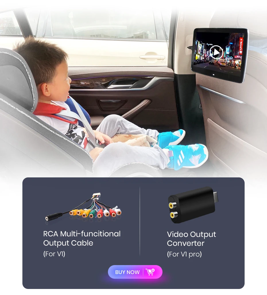 Buy the follow accessories to enable you to connect additional device, allowing your passengers to watch movie or play video games in the backseat.